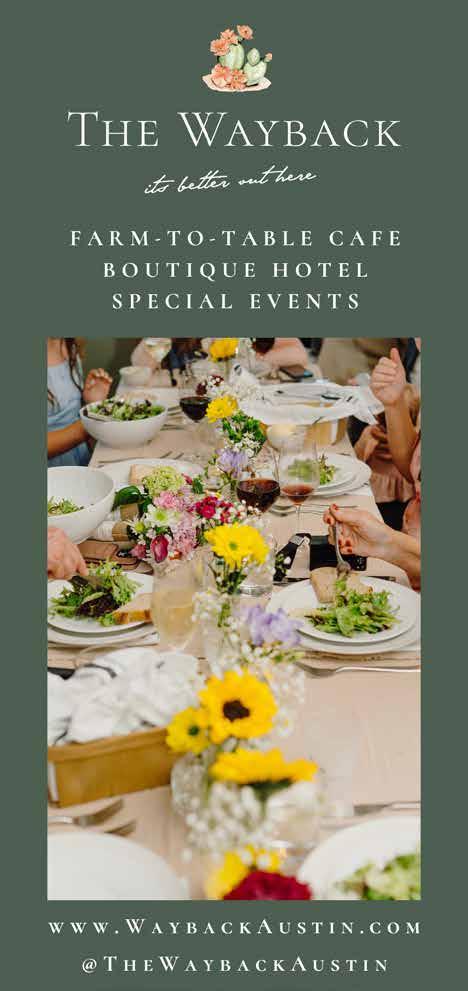 Among the rolling hills of the Texas Hill Country, a memorable escape in West Austin awaits. The Wayback offers a relaxed boutique cafe and hotel experience, featuring eight distinct cottages, as well as The Cafe, Patio, Cabana, Lawn Areas, Oak Grove, and Pool. The Wayback invites you to relax, celebrate, and embrace the cherished moments of the season.