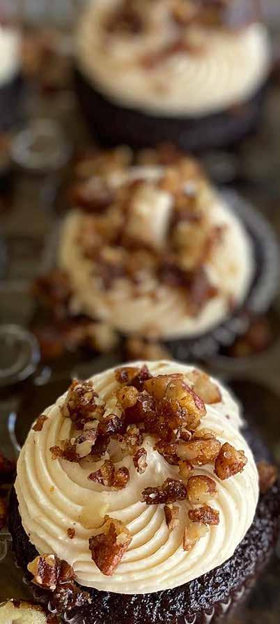 Every cake tells a unique story, sculpted in buttercream and tailored to the visions of brides. “We are team buttercream at the bakery and love making gorgeous and delicious creations for all occasions,” Lauren shares. The bakery’s case is filled with scratchmade delights, ranging from cookies and brownies to macarons and gourmet cupcakes.