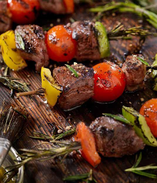 2. After marinating, assemble the kebabs by threading the steak, cherry tomatoes, and bell peppers onto skewers. Grill for 4-5 minutes per side on medium-high heat until cooked to your liking. Once cooked, serve the kebabs with your favorite side dishes. Enjoy!