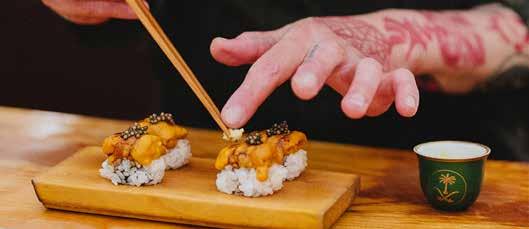 the plate. “Yoshi and I are both very focused on how to make OTOKO better on a day-by-day basis,” says Billy. OTOKO’s commitment to the local and global food and beverage community is evident through its partnerships with eco-conscious purveyors and local producers like Hausbar Farms and Hifi Mycology. “I’ve always worked hard at highlighting lesser known beverage producers, small lot wine growers, new to the market sake brewers with the intention of showcasing these fantastic products.”