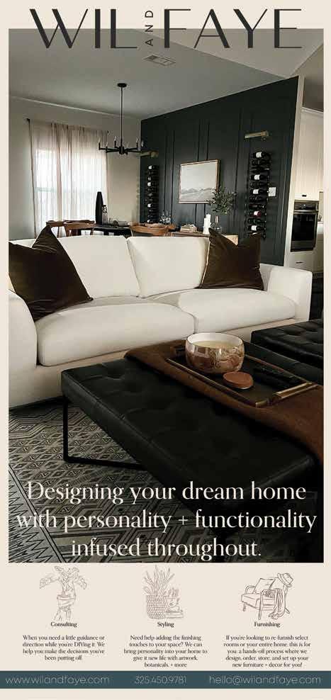 What elevates our home experience are our neigh bors – the warm greetings, helpful advice, and shared celebrations that define West Austin. They are an extension of our home, where our personal stories evolve, providing solace and inspiration along the way. As you turn the pages of our "Home" issue, we encourage you to reach out and meet the talented creators, builders, and local artisans who contribute to this unique community. Their unwavering commitment and creativity serve as a constant source of inspiration, reminding us that we are all integral parts of a continuously evolving, thriving neighborhood.