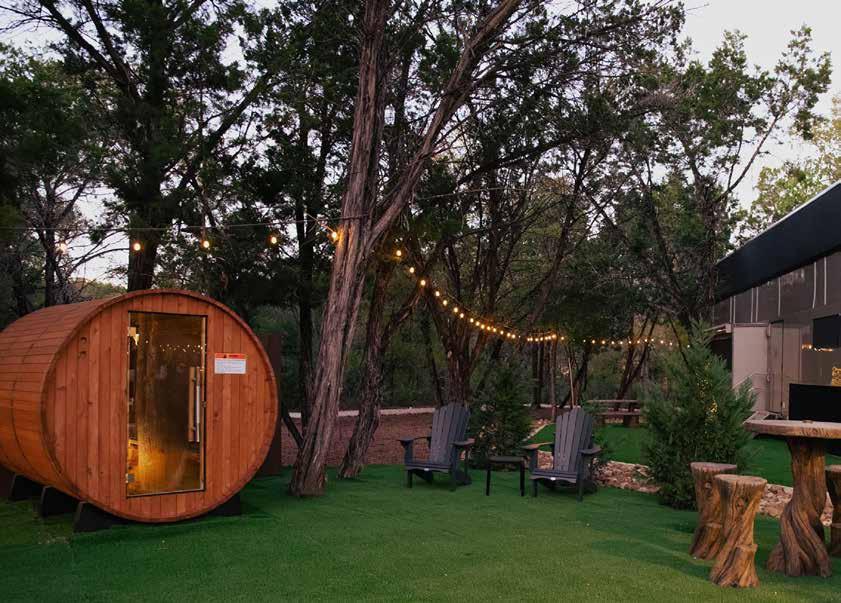 beautiful garden, barbecue facilities, a covered outdoor cowboy pool and ice bath to keep you cool during Texas summers, sauna, oversized game boards, and a versatile tent-like event space. Additionally, one can relax near the koi fish pond, or relax by its bank.