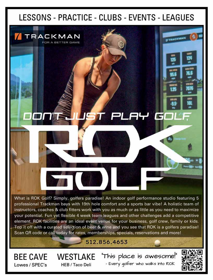 Practice, train, and learn with Trackman data, HD video, and expert instructors to master your golf swing at ROK Golf. Play virtual golf on over 250 courses, indoors, anytime, and beat the heat. Enjoy socializing, watching games on a huge TV, shooting pool, and having a drink while competing with friends in the best Trackman virtual bays. ROK Golf is your ultimate golf cave. Transform your game at ROKGolf.com.
