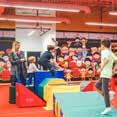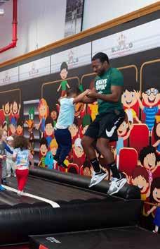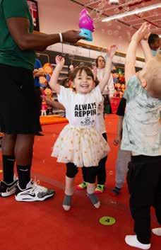 are offered for children as young as four months old. This shared play, where parents and children under age 4 participate together, “really promotes and teaches families the value of exercise while educating everyone on the importance of incorporating fitness as a lifelong habit,” notes Ralph. Younger children build age-appropriate physical skills such as crawling, tumbling, climbing, jumping, and kicking, along with a bouncy air track, bubbles, and ball time to keep the fun going.
