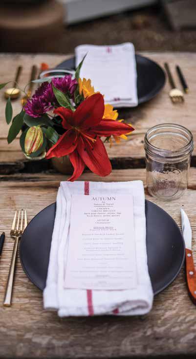 • An easy but thoughtful detail is to put a simple menu at each place setting, so guests know what to expect. “Add a pen, so guests can jot tasting notes, especially for wine pairings or multiple courses,” Hannah says. “Guests can share comments, then take the menu home as a sweet reminder of the event.”