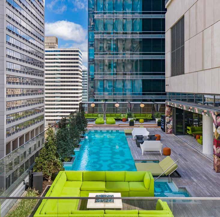 If a day of relaxing is on the agenda, guests can book a spa day at the Away Spa located at the adjacent W Hotel. This full-service spa offers massages, body and facial treatments, as well as private fitness training and energy healing sessions, making this a great option for a solo or group spa day. When booking a spa treatment, guests from Element gain access to W’s Wet Deck Pool and Wet Bar. The Wet Deck Pool offers heated outdoor pool experiences 365 days a year. If you have ever wanted to swim in the snow, the Wet Deck Pool offers that option. Luxury cabanas are available for rent poolside as well. The views from the Wet Deck Pool and the rooftop Secret Garden are exceptional and provide a great way to spend a memorable day or evening above Center City.