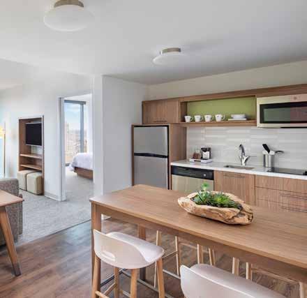 Offering 414 rooms, 46 suites, and 37 meeting rooms spread over 24 floors, this high-rise hotel provides spacious accommodations with a focus on extended stays. All accommodations have either a kitchenette or a full kitchen, oversized closets, and spa-inspired bathrooms. The full kitchen provides a great alternative to dining out daily.