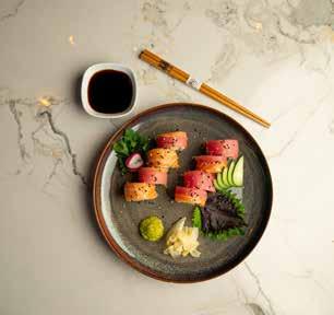 You’ll also find sushi on the menu, including the signature King Corona roll of shrimp tempura, cream cheese, avocado and octopus topped with cilantro crab, yum yum sauce and crispy onions.