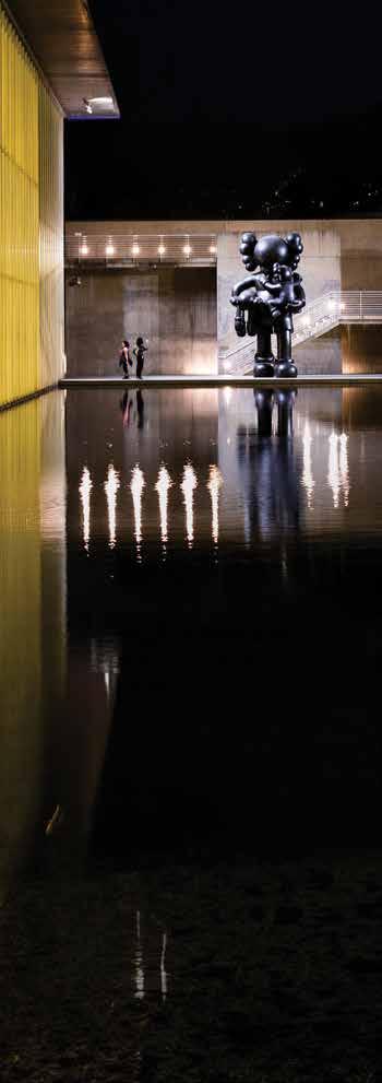 Outside, the water-filled courtyard provides peaceful spaces to catch up on a good book.