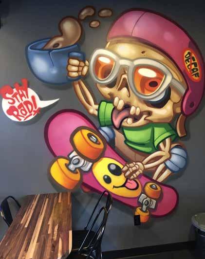 Owned and operated by Joe and Johanna Perazella, the West Hartford location is the fourth in their succession of Perkatory Coffee shops. Specializing in handcrafted artisan-roasted coffee, the cafes feature large Shaka-waving skeletons and skateboard riding reapers paintings by artist Kevin Boudreau on the walls and an energetic, upbeat playlist for ambiance. A unique place to meet friends or hang out and enjoy, Perkatory offers a coffee experience.