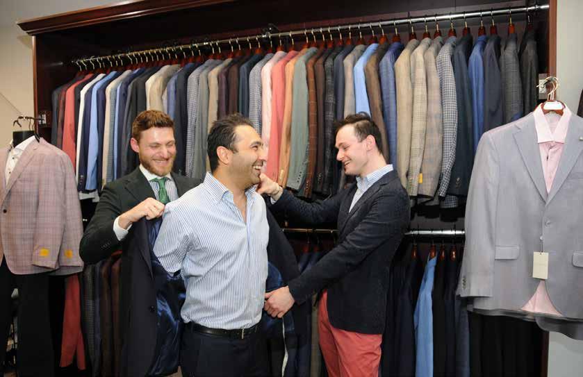 “There are the bread-andbutter staples. There should be a navy blue and a black or gray suit. And some blazers. And then a couple of pants, khakis, gray, maybe a brown or olive, charcoal, a few staples. There are different ways to figure out what someone needs. But if you’re going into a job that requires suits, there’s a method to that.”