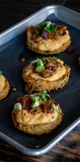 Fried Green Tomatoes with Pimento Cheese and Bacon