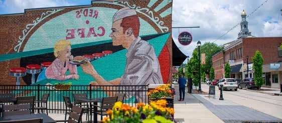 There are two public art murals worth mentioning here. Across the street from The Appalachian is the “ Wings of Wander,” a sweeping monarch butterfly painted by local artist Pinkie Mistry that serves as a nod to Dolly Parton’s “Love is Like a Butterfly.” Adjacent to the restaurant is “Red’s Café,” a diner scene painted by Seth Bishop and Ben Harrison of Smoky Mountain Mural Company. The mural depicts Paul “Red” Clevenger serving a young Dolly Parton a burger, just like he did throughout her childhood. The place was so special to Dolly that she added a Red’s Café burger joint to Dollywood.