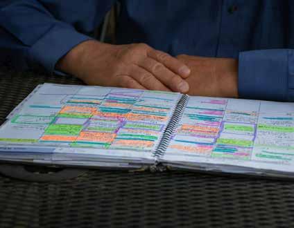One glance at his day planner provides a glimmer into what his average workday must be like: nearly every line on each day has a name written down. There are scribbles in the margins, and the pages are worn from all the flipping and note-taking. The rainbow of highlighted information only makes sense to Edward, but it’s the method that works best for him. Over the course of an hour’s
