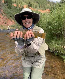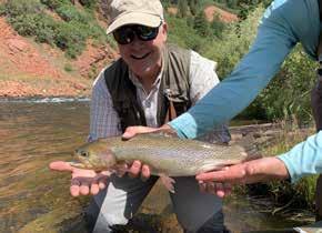 a huge brown trout, easily 28 inches long that barely fit into the net. A guide who was working with another group came upstream to help get it into the net. He called it a “fish of a lifetime.”