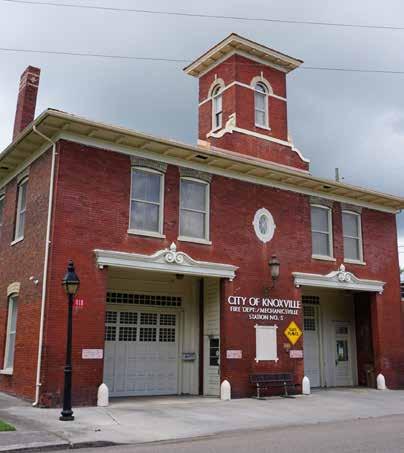 Mechanicsville offers a cluster of stylish Victorianera historic homes on the northwest side of downtown, west of Second Creek and north of the old Southern train tracks, plus some interesting old buildings still in use today. Developed soon after the Civil War, it’s arguably the oldest suburban neighborhood in Knoxville, and well preserved. The community is named for the “mechanics”—the ironworkers—who worked at the Knoxville Iron Foundry on Second Creek.