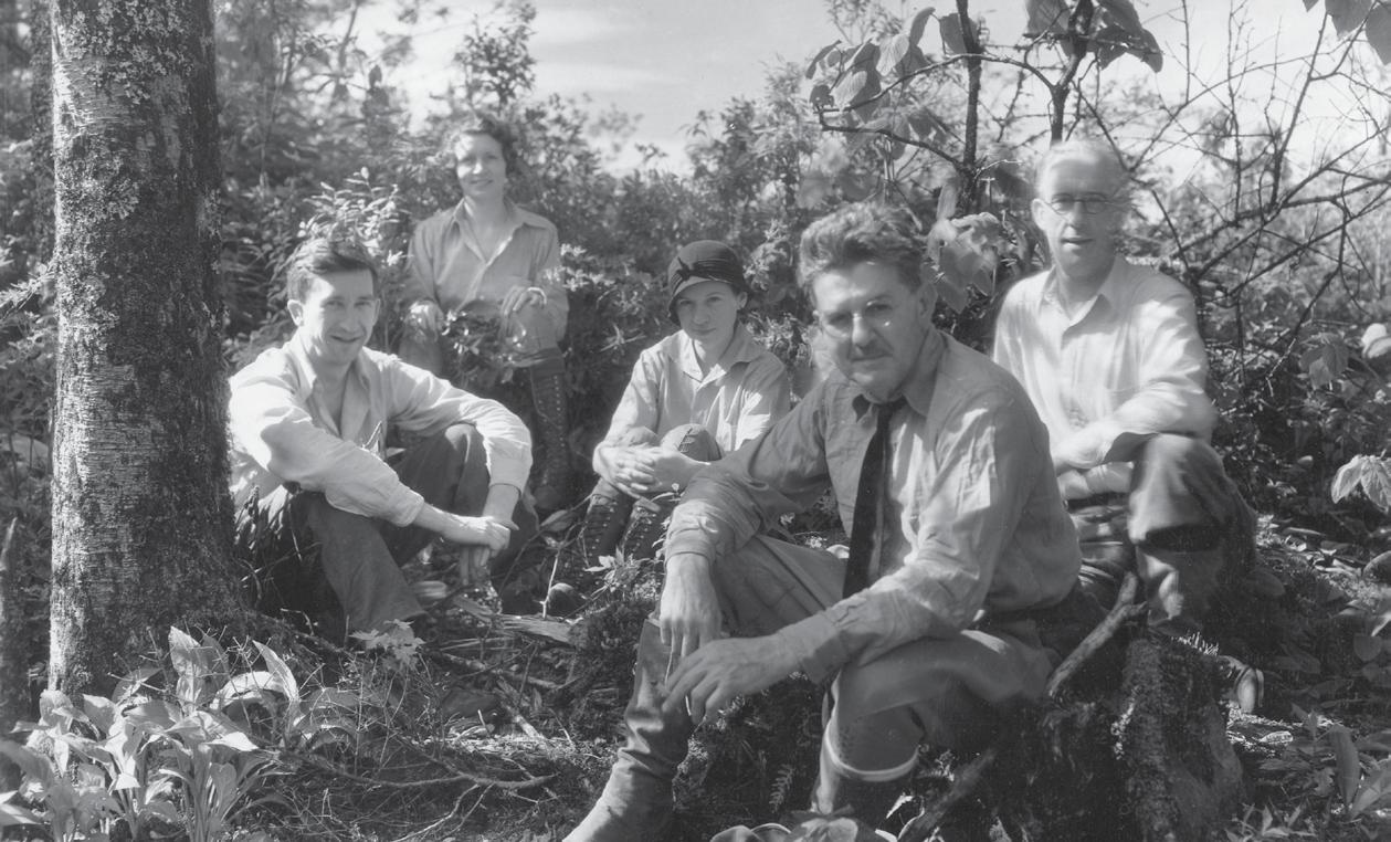 In late 1923, the Great Smoky Mountains Conservation Association was formed with the aim of advocating for the creation of a national park in the Smokies. Col. David Chapman (1876-1944), foregrounded in this picture, was the Association’s president. Due to his enthusiastic advocacy, Chapman is often referred to as the Father of the Great Smoky Mountains National Park. He was one of few Americans to have a major mountain peak named for him while he was still living, and this photograph captures the even more rare instance of someone sitting atop their namesake peak. Chapman Highway, Knoxville’s oldest direct route to Gatlinburg and the Smoky Mountains, also bears his name. Other Association members in the picture, from left to right, are Harvey B. Broome, Mrs. Charles W. Myers, Miss Mildred Query and Jim Thompson.