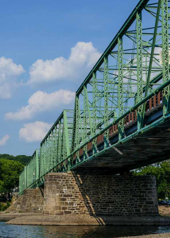 indelible walk that pedestrians can walk for free. Walk, talk and enjoy this magnificent view over the Delaware River. The Bridge Authorities Commission have recorded as many as 14,000 pedestrian crossings on the bridge on a single weekend day. The communities of New Hope, PA and Lambertville, NJ will host a myriad of events come this July 2024. Who’s Onboard?