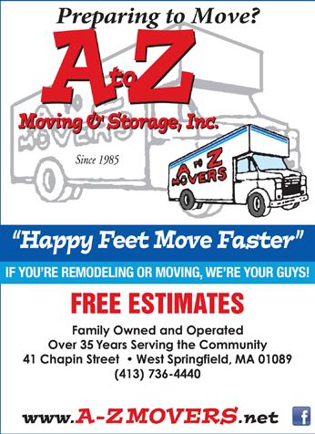 A self-described transitional specialist, Benjamin recently earned his real estate license so he can be an asset in multiple ways for the transitions in people’s lives and “not only provide moving services.” A to Z Moving & Storage is located at 41 Chapin Street; call 413.736.4440 or email BenAToZMovers@gmail.com