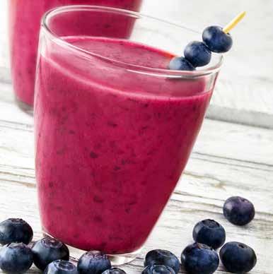 In a blender, add all ingredients and blend for 1–2 minutes, adding more milk if too thick, until all ingredients are smoothly pureed and blended. Garnish with additional blueberries on a decorative toothpick and a paper cocktail umbrella, if desired. Makes two large or four small servings.