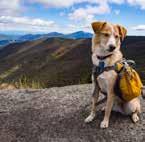 Having your dog fitted for a comfortable harness keeps your dog safe on the trails. This design holds a collapsible bowl, water, and treats, which helps keep your dog hydrated throughout the day and offers an opportunity to give treats for a job well done. Check with your vet first to ensure this type of harness is suitable for your dog. While on the trails, take time to work on recall skills and other training and tricks. Your dog will enjoy the one-onone time with you!