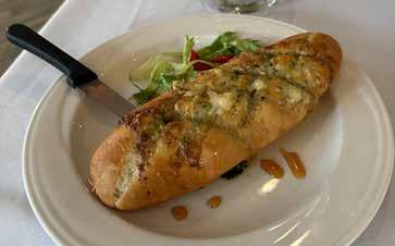 Oven-baked Italian Bread, topped with melted Gorgonzola and fresh basil.