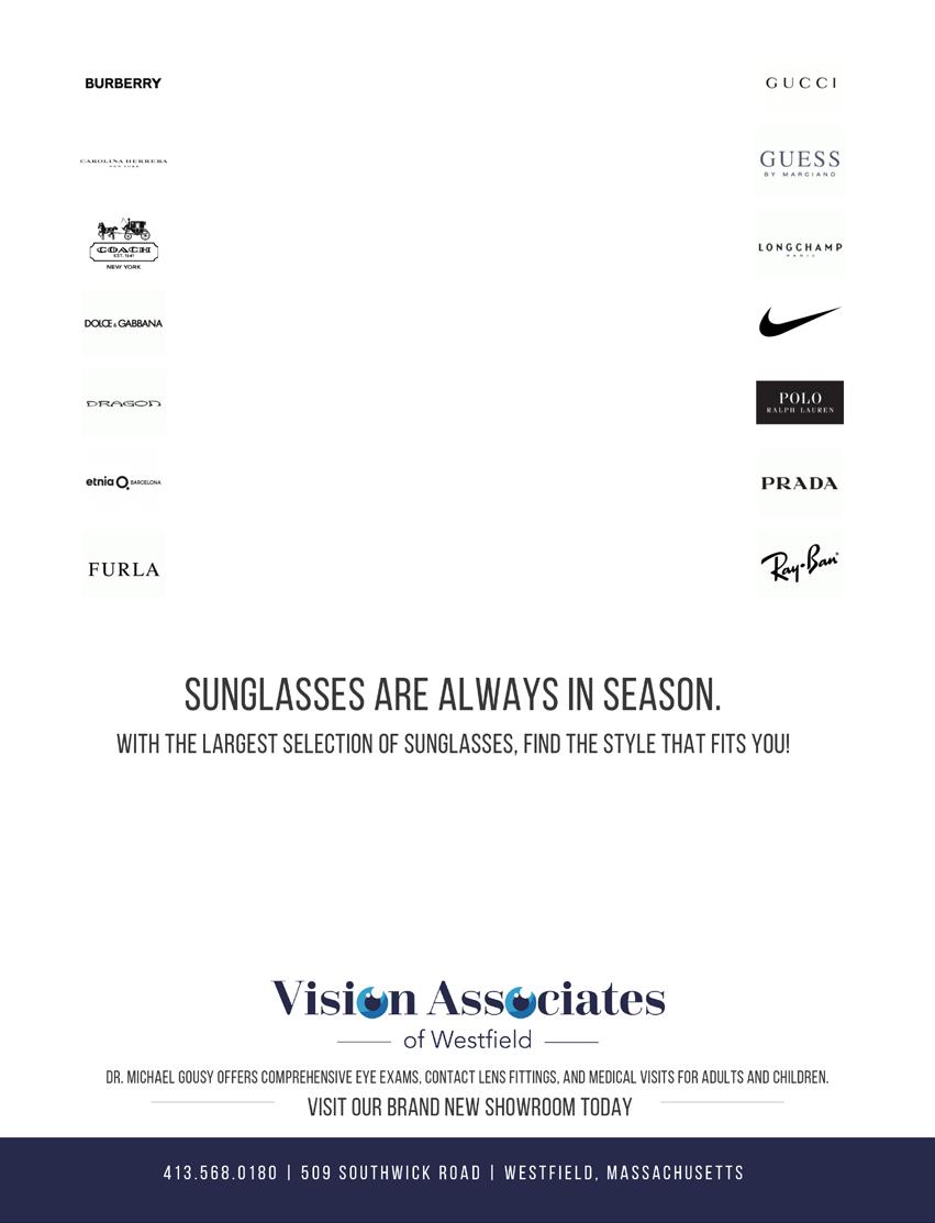 YES! C O M E S E E O U R N E W L O C A T I O N A N D S A Y T O Y O U R D R E S S Book an appointment online NicoleWzorekDesigns com Westfield, MA 413-250-1167 (413) 579-2827 | office@adorseyconstruction.com www.adorseyconstruction.com Text or email your current declaration page for a FREE INSURANCE QUOTE. We offer Business, Life, Boat, ATV, Snowmobile, Auto, Home and Classic Car Insurance. SOUTHWICK INSURANCE AGENCY, INC. 562 College Highway Southwick, MA 01077 413-569-3522 2240 Westfield Street West Springfield, MA 01089 413-746-2822 southwickinsagency.com | dhess@southwickinsagency.com 24/7 CLAIM SERVICE Southwick Insurance Agency is the place to find great service & low rates. Professional & Friendly Service • Family Owned & Operated FREE REGISTRY PICK-UP Open Saturday 9am–11am • Mon–Fri 8:30am–5pm Rated A+ by the BBB – Our agency represents 12 insurance companies with over 8,000 clients over 35 YEARS in Business! jenthedietitian.com | 413-579-5450 jen@jenthedietitian.com 102 Elm Street, Suite 17 Westfield, MA Ready to eat right? Call me to get started! 38