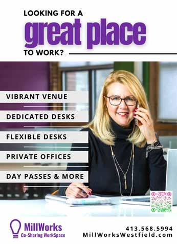 413.568.2782 | 217 ROOT RD, WESTFIELD | ROOTSAQUATICS.COM GET $50 OFF ULTIMATE MEMBERSHIP 1ST 10 MEMBERS TO MENTION THIS AD* Offer valid in June only. *New members only. Scan Here to Claim Your Free Class! 181 ROOT RD, WESTFIELD | ROOTSCYCLE.COM HIGH FITNESS TREAD N' SHRED BOOT CAMP YOGA STRENGTH TRAINING ROOTS CYCLE RIDES TRX BODY PUMP BODY COMBAT WATER AEROBICS MORE A STRONGER VERSION OF YOU! Here’s To 75 Years Of Making It Count. 413-536-8510 | mbkcpa.com MBK is proud to celebrate 75 years of partnering with the local business community. Here’s to 75 more! Join A Team Where You Will Be Valued & Appreciated! Learn more at www.rvccinc.org/careers ✓ $7,000 annual tuition reimbursement program ✓ $1,000 annual CEU benefit ✓ Bonuses for licensure and for bilingual applicants ✓ Generous health benefits with low employee contribution levels ✓ Flexible schedule with opportunities to work from home, telehealth WHY WORK WITH US? RVCC is hiring psychologists & licensed/licensed-eligible clinicians: • Ph.D. • Psy.D. • LCSW • LICSW • LMHC UP TO $15,000 IN HIRING BONUSES Locations in Westfield, Holyoke, Chicopee, Easthampton & Springfield 4