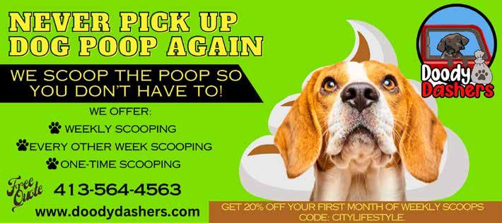 7 South Maple St, Westfield # 413-568-0100 Email: bush.lw@verizon.net Mon-Thurs: 9am-5:30pm | Fri & Sat: Appt only | Sunday Closed Call today to schedule a showroom visit to design your new kitchen. VISIT OUR SHOWROOM FULL SERVICE KITCHEN & BATH REMODELING Multiple lines of custom and stock kitchen and bath cabinets. Custom Laminate, Corian, Granite and Quartz Countertops. 1152 Southampton Rd • Westfield, MA 413-579-5310 www.7BsBarandGrill.com We’ll be running Irish Specials all month long. Guinness on draft, tons of giveaways & specials for St. Patty’s Day. We’ll have Boiled Corned Beef Dinners, Smoked Corned Beef Dinners, Ruebens, & our Irish Burger! Discover your pot of gold. Your CBD Store® offers a wide selection of Oil Tinctures, Water Solubles, Topicals, Pet Products, and more Every product is third party lab tested, including USDA certified Organic Tinctures 20% OFF PURCHASE OF $50 OR MORE Valid at listed location only. Must be presented. See store for details. EXCLUSIVELY IN-STORE AT Southwick 549 College Hwy • (413)998-3250 17 MARCH 2024 | CITYLIFESTYLE.COM/MAGAZINES