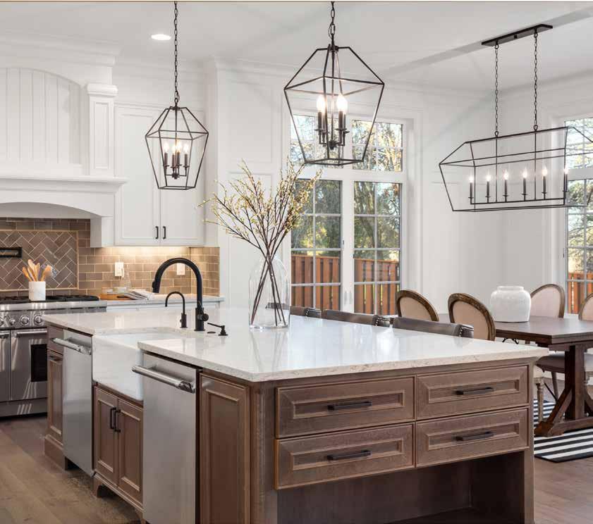 Warm finishes reflect our style. There are cozy spaces even though it’s a large home, and the design has a classic, timeless feel. A delicate balance exists between large spaces like our nine-foot kitchen island with plenty of room for everyone to join in on homemade pasta dough night. There is also a mix of many smaller spaces to find your peace and quiet.