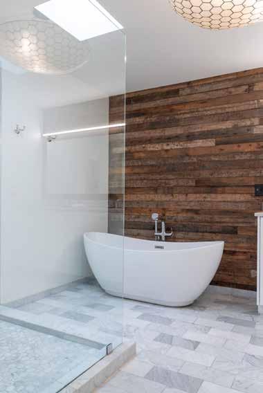 window in our walk-in shower that turns it into a steam room. We turned a linen closet on the second floor into a secondary laundry for our children. Laundry is no joke with college kids! We added an exterior barn on the back of the property for my husband’s office/music room. The house also boasts front and back porches as well as a walkout porch off the basement, a sunset porch off our barn and several different entertaining spaces in the barn. This provides space for everyone to spread out, especially if multiple children want to host company on the same night.