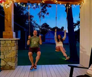 Unique features include the fun swings on our front porch. It's impossible to swing and be unhappy! It is one of the favorite spots and anyone who visits exclaims, “But first we have to try the swing!” We extended our wood-burning fireplace hearth to span the whole family room and had a hand-poured concrete hearth. We installed a built-in state-of-the-art Thermador cappuccino maker that can be programmed through Bluetooth. You can actually order coffee from your bed! My personal favorite.