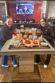 1: Congratulations to Bill Gallagher and Abby Miller, The Executive Team. 2: Friends enjoy dinner at Old School Pizza and Wings, Grand Opening.