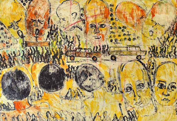 On the other side of town, MoCA exhibit is of works by “outsider” an artist who lived in “Colored Town” and painted a different type of fear - one of racism and violence. Though he never left his approximately three square miles, his work speaks of a nation of unrest.