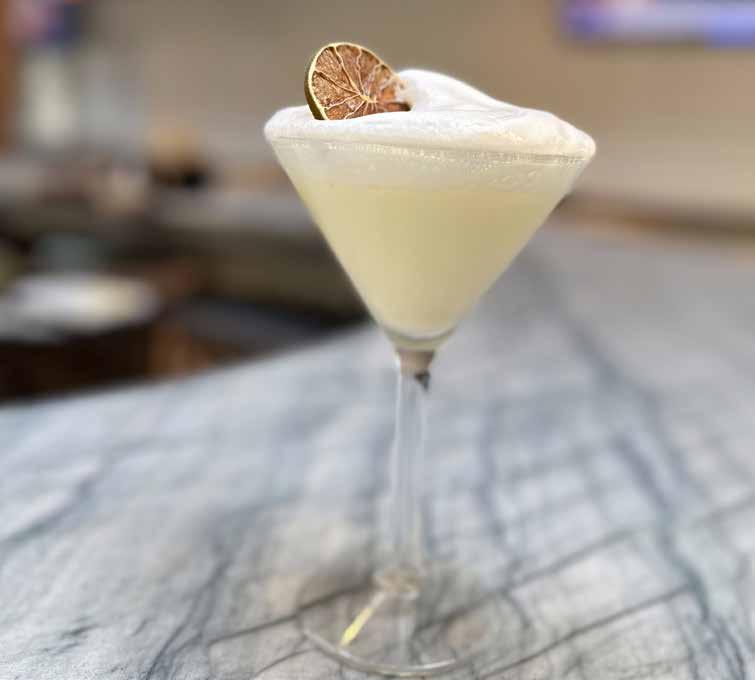 “It just kind of has the feeling of the season,” says Patrick Jean, the owner of Nômade, about the drink, which tastes like a boozy lemon meringue pie. “It’s not too heavy, it’s not too light, it’s an earthy color, and it’s so fresh.”