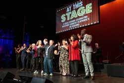 22: Jens and Kerri Joller, chair of the Gala Committee. 23: Performers at the Westport Country Playhouse gala, At This Stage, on October 4, 2025. 24: Anne Keefe, Daniel Adamson, Clea Newman, Athena Adamson, and Kurt Soderlund at the Gala. 25: Performers included, from left, Santino Fontana, Melinda Doolittle, Cady Huffman, Danny Burstein, and many more. 26: Managing director Beth Huisking, artistic honoree Nathan Lane, and artistic director Mark Shanahan. 27: Anne Keefe received the Playhouse Leadership Award, Nathan Lane was the artistic honoree. 28: Sara and Jonathan Levy. Photography by Kerry Long Photography