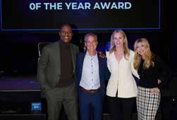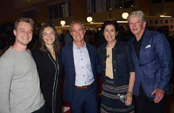 36: Guests at the 2025 StartUp Westport Innovator of the Year Awards, honoring Mark Shapiro. 37: Jay Williams, Cliff Sirlin, Kara Curtis, and Sara Eisen. 38: Jennifer Tooker presented Andrea and Bill Pecoriello of Sweet P Bakery with the Community Impact Award. 39: Guests at the ceremony. 40: Members of the Staples High School Service League of Boys (SLOBs). 41: Cliff Sirlin of StartUp Westport, center, with Community Impact honoree Andrea Pecoriello, second from right. 42: The Sirlin Family.