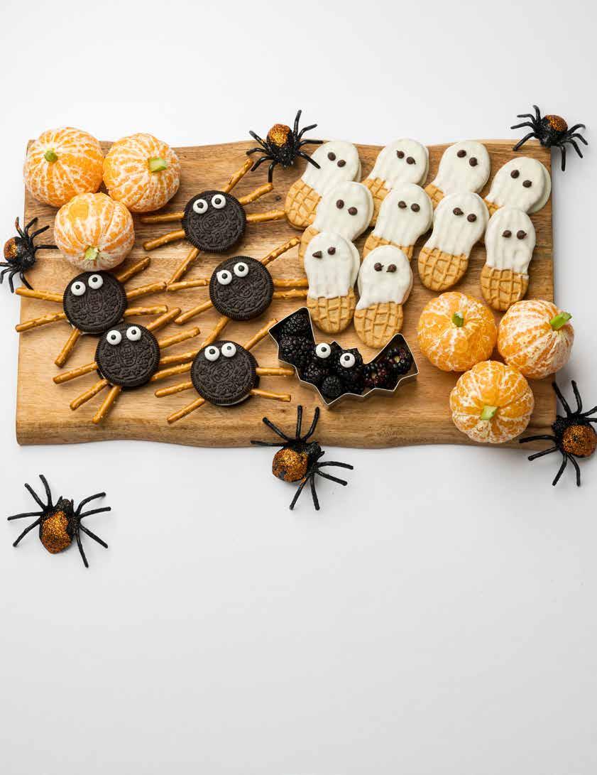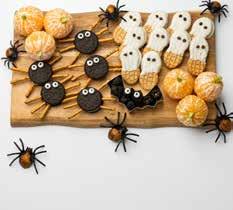 Spook-Cuterie is a cutie Halloween snack for pre- or post-trick-or-treating. This spooky spin on the classic charcuterie board will excite the kids and provide nutritious nibbles before they fill up on too much candy. Whether you bring this to the school party or set it up while everyone gets in their costumes, fun MUMMY-ries will be made.