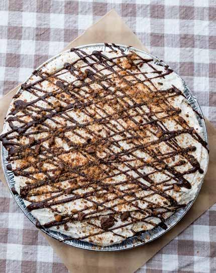 We served Peanut Butter Cream Pie on opening day in 2015. A line formed a half-hour before opening time. When we unlocked the door, chaos broke out. Pies were boxed up quicker than I could replace them. We closed halfway through the day to make more pies, only to reopen and sell out again. For the next several weeks, I lived and breathed Peanut Butter Pie. I would wake up early to press crushed chocolate cookies into the pans, whip the cream, fold it into sweetened cream cheese, drizzle chocolate, sprinkle bits of peanut butter cups to finish it off, then slice, serve and do it all again the next morning.