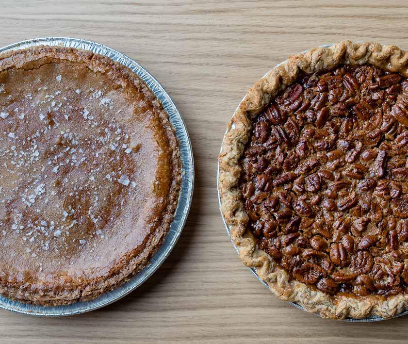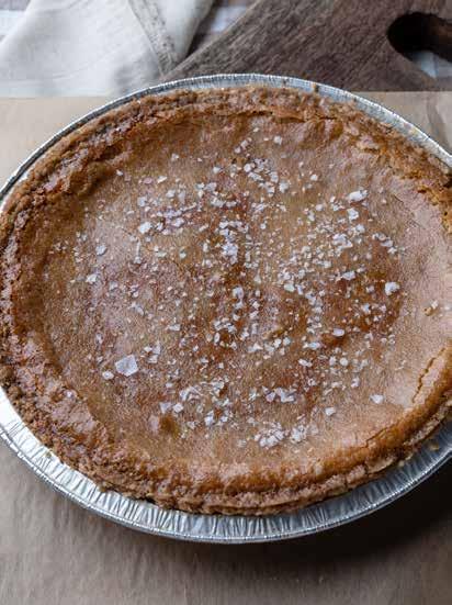 Customers sometimes call it “The ugliest yet the tastiest pie in the case.” It is no secret that we eat with our eyes first, but when it comes to Brown Sugar Chess Pie, I beg you to close your eyes and savor the experience—layers of crunchy crumble crust and creamy brown sugar filling topped with sprinkles of flaky sea salt. These ingredients pair perfectly together to create a gluten-free pie that is sweet, salty and utterly unforgettable. It may not be the most beautiful pie, but it outshines the rest regarding taste.