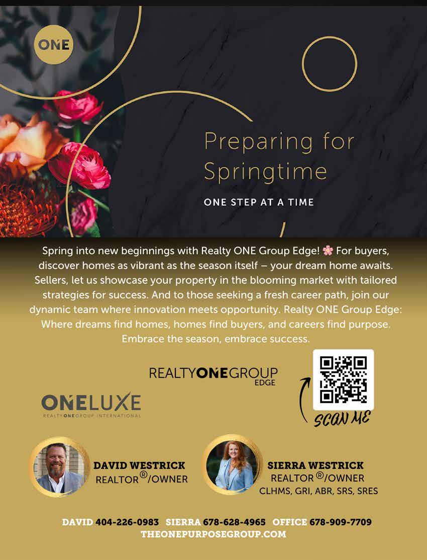Sierra: So many highlights, especially working with firsttime homebuyers, and I cannot tell you the joy you have when you hand someone the keys to their home for the first time. But most recently in my career, I was honored to serve as the 2023 President of the Cobb Association of Realtors and its 2300 members. It was such a rewarding experience to give back to the industry that undoubtedly changed the direction of my life and our families' lives. Another highlight was partnering with my husband on this adventure of becoming brokerage owners and taking on something bigger than ourselves. David is always taking us to bigger and better things.