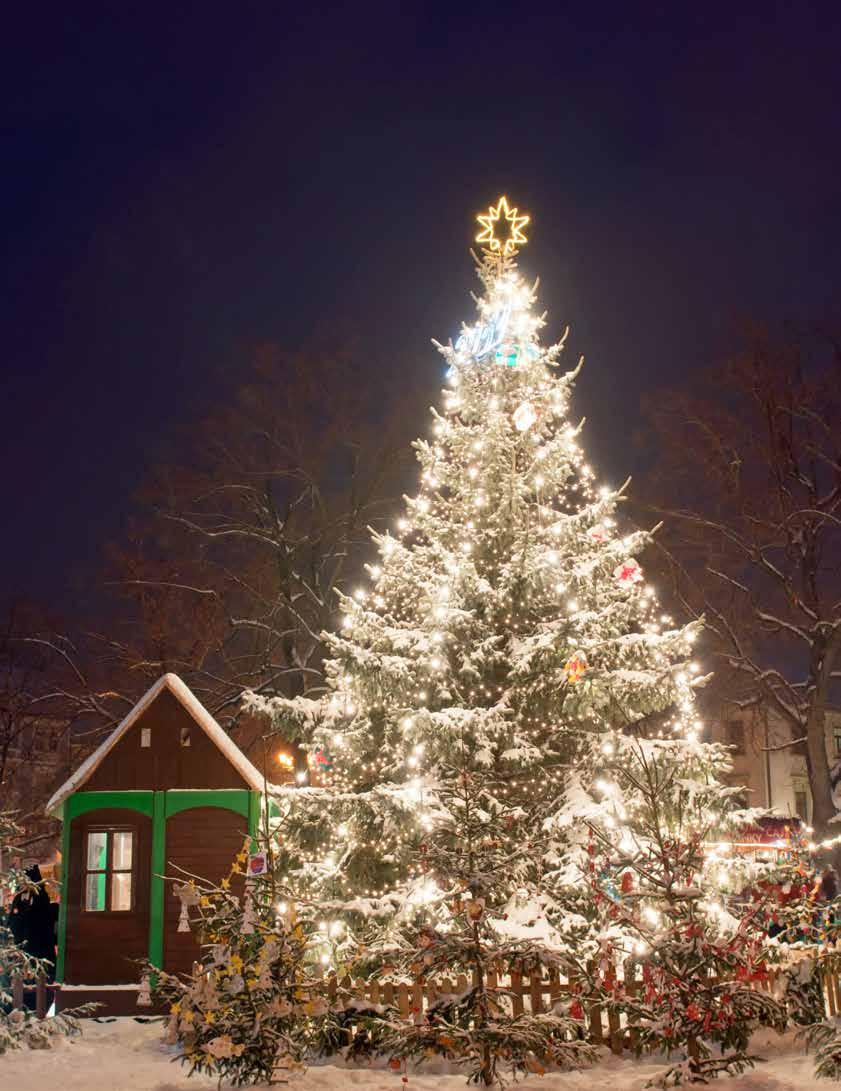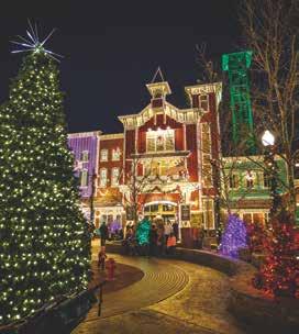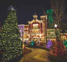 Branson’s Silver Dollar City transforms into a glowing Ozark wonderland with more than 6.5 million lights and over 1,000 decorated trees. At its heart, an 80-foot animated Christmas tree dazzles Town Square every evening. Guests can stroll through Christmas In Midtown®, enjoy the final year of Rudolph’s Holly Jolly™ Parade, and see Broadwaystyle productions like A Dickens’ Christmas Carol. Artisans showcase handcrafted gifts while holiday buffets serve prime rib and cinnamon bread. With coasters, a living nativity, and even a Frisco Sing-Along Steam Train, An Old Time Christmas offers families the perfect mix of timeless tradition and modern holiday magic.