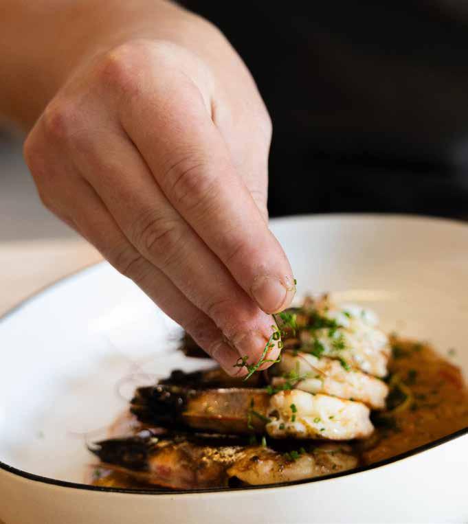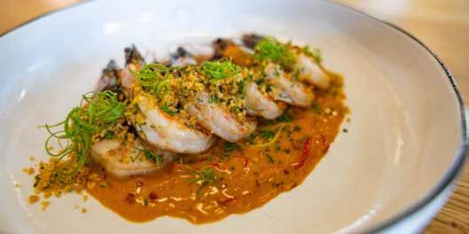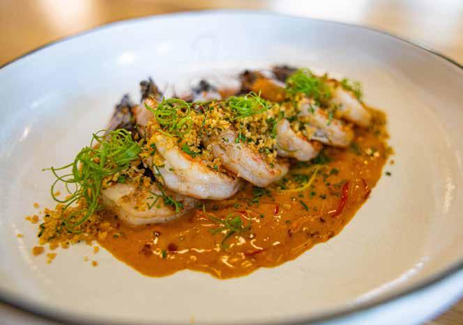 • Whole Georgia Shrimp “Scampi” with Diablo Butter, a butter made using red jalapeños, arbol, and red chili flake. Sourced from Marshland Seafood in Brunswick, GA.