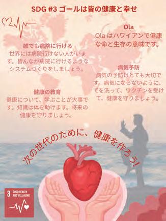 SDGs ポスター このプロジェクトは、国連の持続可能な開発目標(SDGs)・ハ ワイが6つゴールを掲げるAloha+Challengeをテーマに、 ハワイの学生が日本語を使いながら、創造力、国際的視野、そ して環境問題への意識を育むことを目指しています。