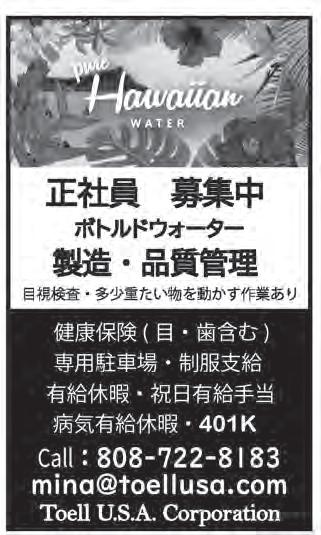●「日本語を教えて!」とアメリカ人の友人に言わ れて2年余り。いよいよ今月、その友人カップルと 一緒に日本旅へ。英語対応のある地域を選びつ つ、覚えた日本語を使ってほしいなと思います。 つたない英語を受け入れてくれるハワイ同様に 日本も観光客に優しいはず。旅行者と受け入れ側がお互いに 思いやる観光のカタチが根付いていきますように…。(大澤)