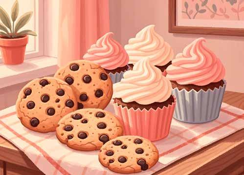 Look at the graph of deserts above and answer the question. How many more cookies and ice creams are there than pies and cupcakes?