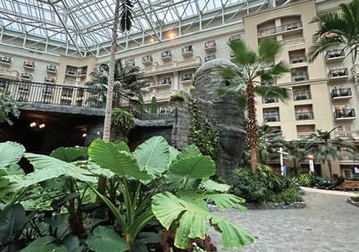 Upon stepping foot into the Gaylord Palms, one is immediately struck by the sheer grandeur. The pièce de résistance is its multi-story central atrium — an enchanting blend of natural elements, with cascading water features, a veritable jungle of greenery, restaurants, shops, and yes, even the unexpected presence of alligators.