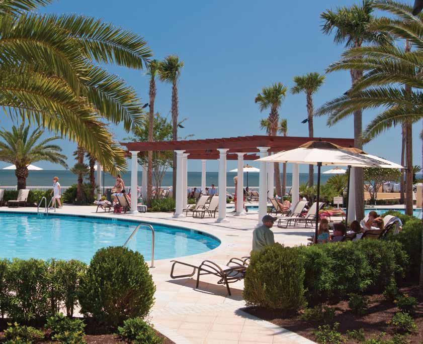 Take a short walk from your room and stroll along the miles and miles of beautiful beach, enjoy ocean front dining at the King’s Tavern (don’t skip the shrimp and grits-see sidebar) or poolside at Ocean Terrace Grille, or take a dip in one of the resort’s five sparkling blue pools. co n ti n ued on next page