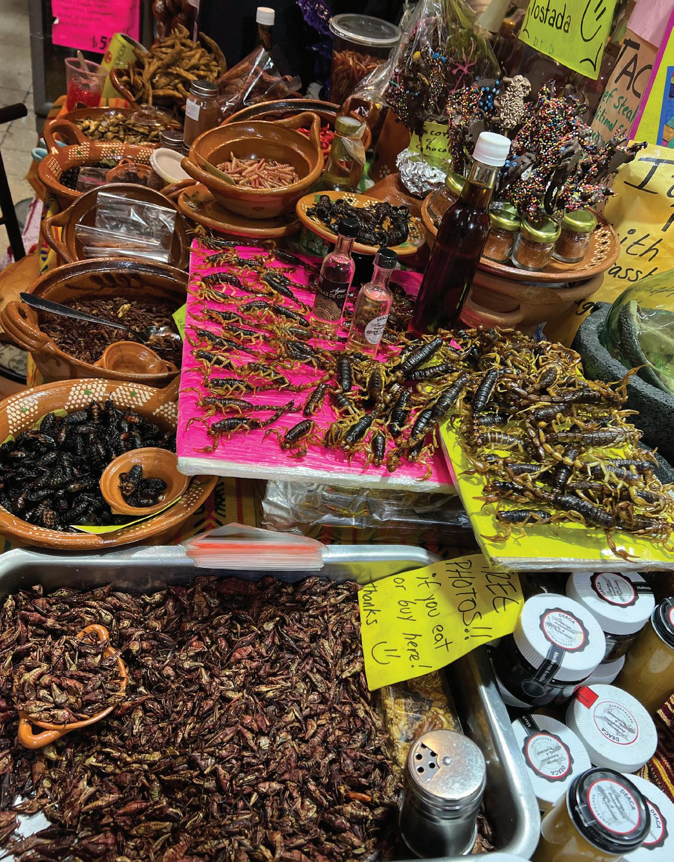 RIGHT Our group was bold enough to try lots of crickets - with a smokey/ nutty flavor - and the ant larve, but the no one was game for the scorpions.