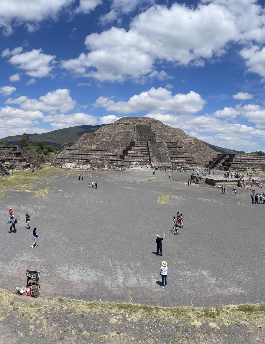 RIGHT Teotihuacan: Two hours of history: I watched several travel videos about Teotihuacuan but was still impressed with the size and history represented there. This site predates the more famous Aztecs and Mayans and was active as the capital of the region from 100 A.D. to 700 B.C.E. It had a population twice of the size of Rome during the same period. At its heyday, most of the structures were covered with stucco and painted with vivid colors and designs and was one of the most important city in the western hemisphere, close in stature to Cusco, Peru, home of the Incas.